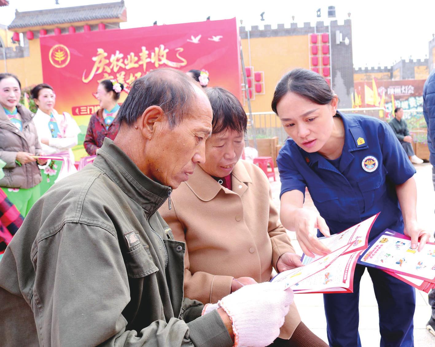 9月19日至21日,“三门峡市陕州区2025年农民丰收节”在陕州地坑院景区举行。其间,陕州区消防救援大队的宣传人员,充分利用这一庆祝丰收的平台,穿梭在活动现场,向城乡群众讲解与消防安全有关的法律法规,以及生产生活中用得到的防火知识,为“三秋”生产构筑坚实的消防安全防线。