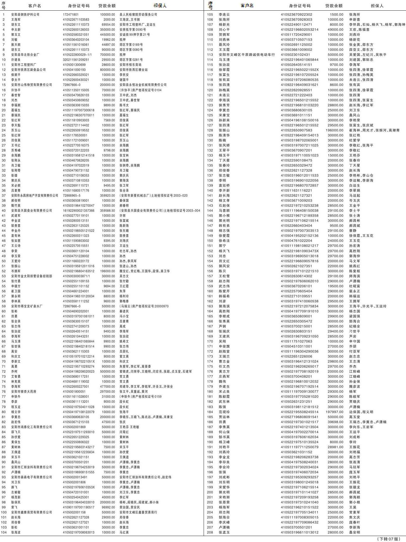 根据中国银监会【银监复(2013)461号】批复,原安阳县农村信用合作联社于2014年1月26日正式更名为河南安阳商都农村商业银行股份有限公司,原所辖分行机构名称也作相应变更。依照有关法律、法规、司法解释及相关政策,河南安阳商都农村商业银行股份有限公司及所辖分支行机构依法对下列债务人(含担保人)享有债权,现予以公告催收,要求下列债务人或其债务继承人自公告之日起,立即向我行及所辖分支行机构履行合同约定的还款义务和责任。如债务人发生更名、改制、歇业、吊销营业执照或丧失民事主体资格等情形的,相关承债主体应立即履行相应的还款义务、清算主体履行清算责任。 特此公告 [本公告仅列明截至2016年10月25日的借款本金余额,所产生的利息、罚息依照合同约定或法律相关规定另行计算,均为债务人及担保人履行还款义务的范围。本公告如存在刊登错误,应以借款合同、借据为准] 河南安阳商都农村商业银行股份有限公司平原支行 2025年9月24日 |