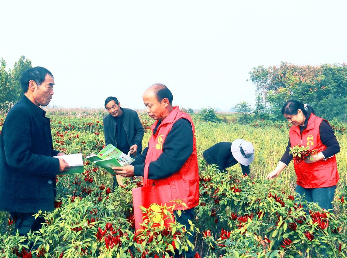 10月24日,在鄢陵县只乐镇袁庄村辣椒基地,该县司法局普法志愿者帮助村民抢摘辣椒,同时向村民讲解反诈等知识,引导群众增强网络安全意识。
