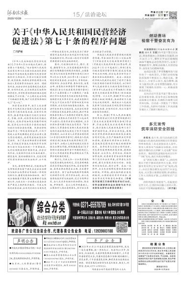 关于《中华人民共和国民营经济促进法》第七十条的程序问题