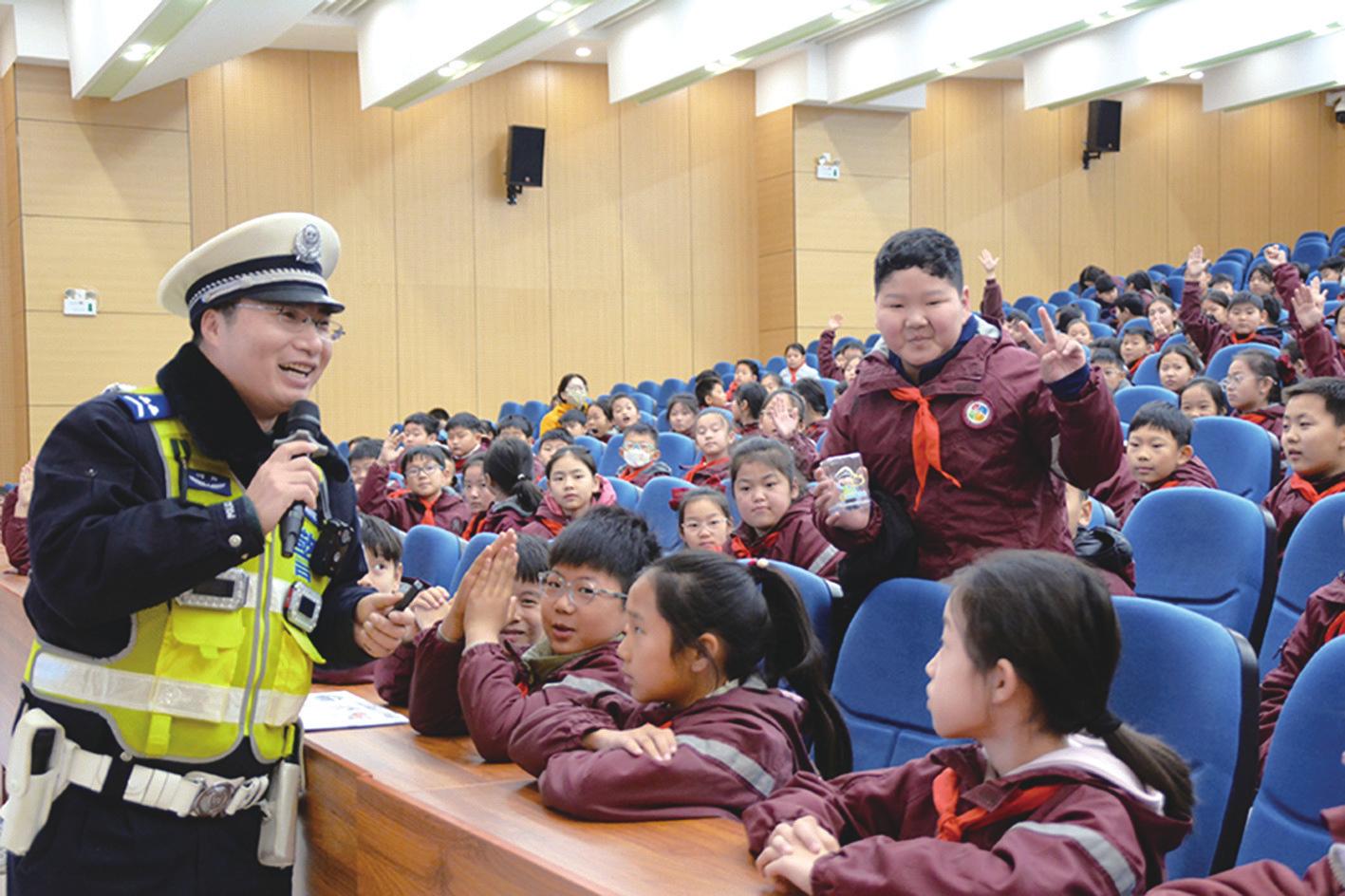 12月2日,郑州市公安局交管支队三大队民警走进二七区四季路第二小学,开展交通安全主题宣传活动。民警为同学们讲解了全国交通安全日的由来与意义,并普及了规范乘车、未满12周岁不得骑自行车上路等交通安全知识。 杜波摄