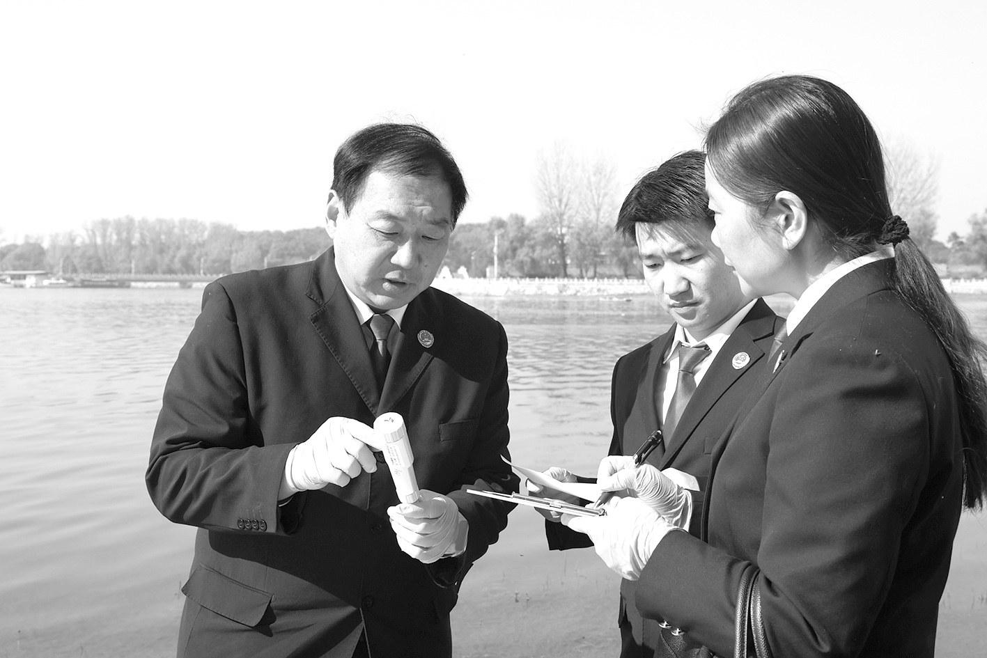 方城县检察院坚持落实“河长+检察长”联动工作机制,通过监督、支持和服务敦促河长制责任单位规范履职,实现重点工作协同推进。图为12月5日,该院干警对办理的一起水质保护公益诉讼案件进行“回头看”,到水库取样检测。
