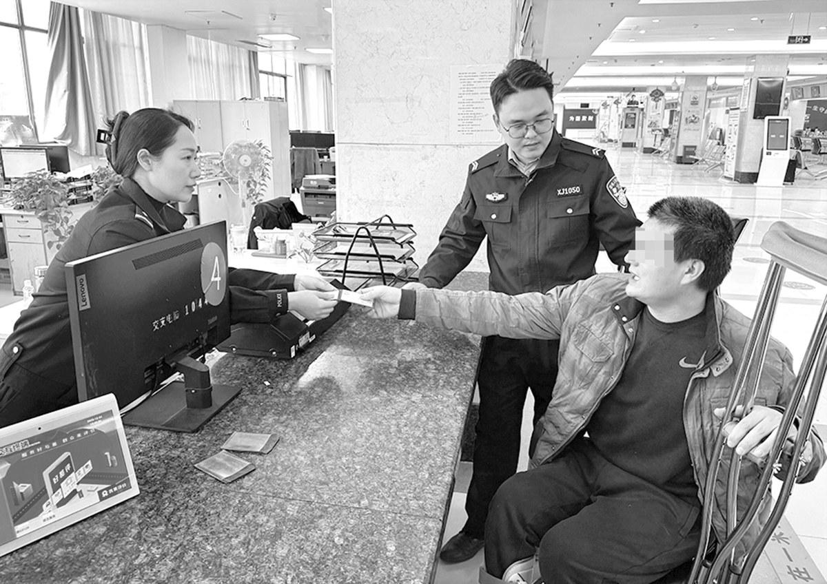 12月5日,在商丘市政务服务大厅公安窗口,民警正协助行动不便的高先生补办证件。为持续深化“放管服”改革,该窗口主动开设绿色通道,落实帮办代办服务,切实为特殊群体和急需办事群众提供便利。