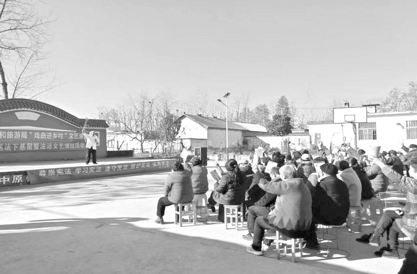 12月3日,潢川县司法局踅孜司法所联合县文广旅局,在辖区胜淮村文化广场举办“宪法进乡村”主题文艺演出活动,以群众喜闻乐见的形式传递法治力量,让尊法学法守法用法的理念深入人心。