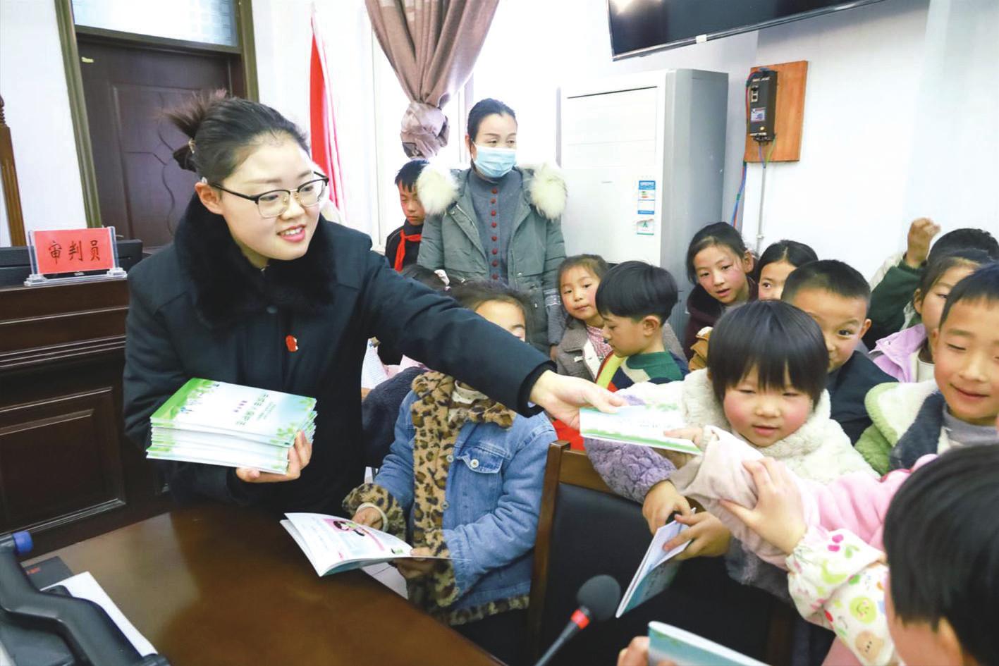 我国法治宣传教育法已于11月1日正式施行。为宣传贯彻该法,连日来,鄢陵县法院组织各基层法庭干警,通过邀请学生参观法庭、举办模拟法庭活动、现场互动提问、发放宣传手册等方式,增进学生的法治意识。图为12月16日,该院张桥法庭邀请辖区学校师生走进法庭进行体验式学法。