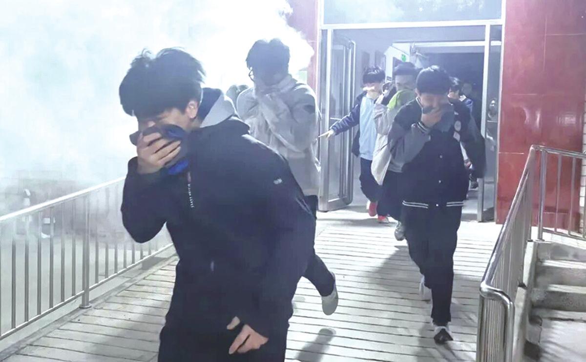 为提升师生应急避险与自救互救能力,筑牢校园消防安全防线,郑州市第三十六中学于近日组织开展了宿舍楼消防应急疏散演练。 李新甲摄