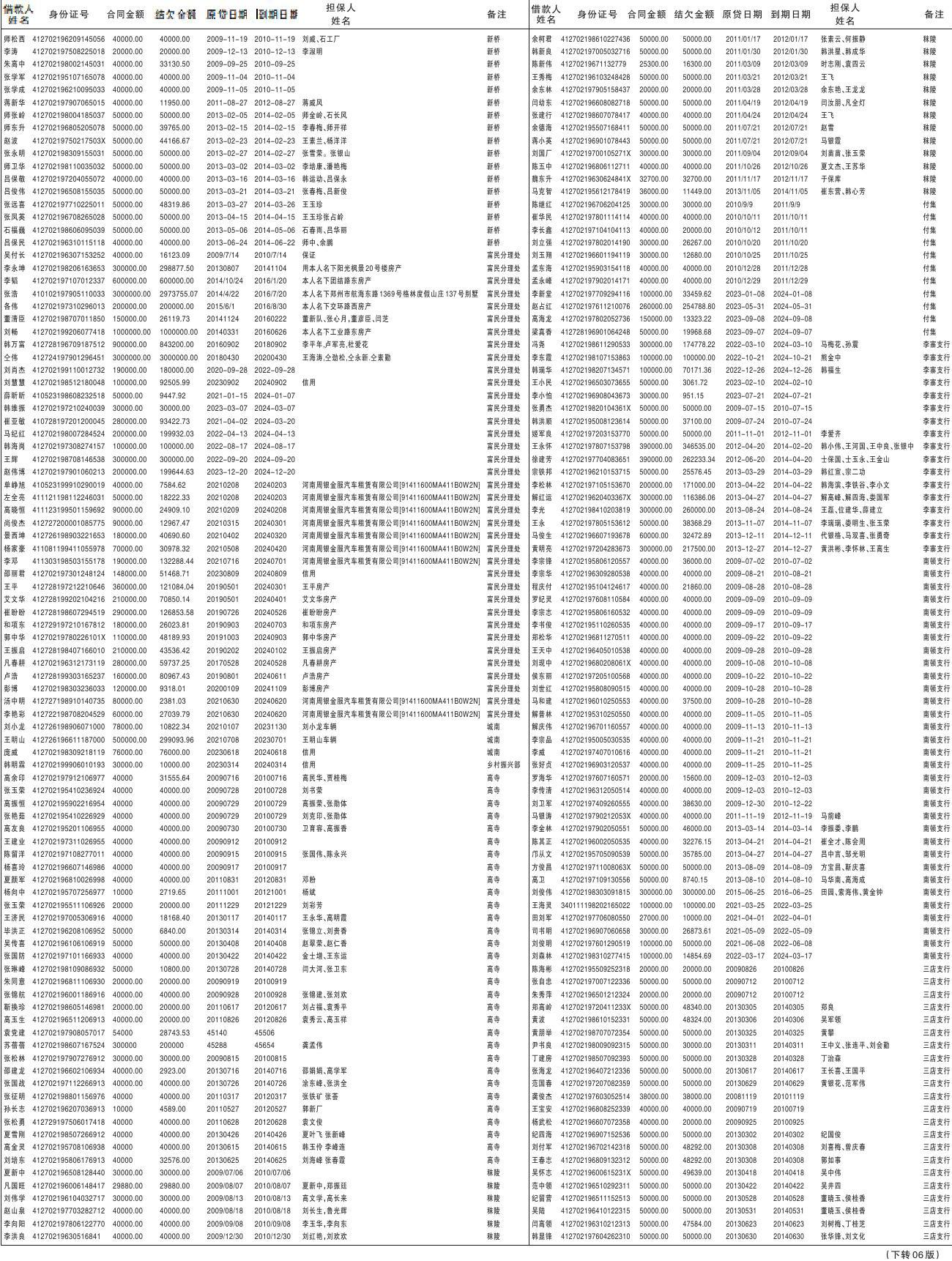 河南农村商业银行股份有限公司项城支行债权催收公告 |