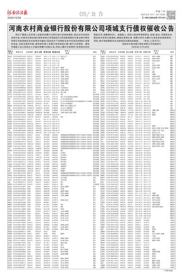 河南农村商业银行股份有限公司项城支行债权催收公告