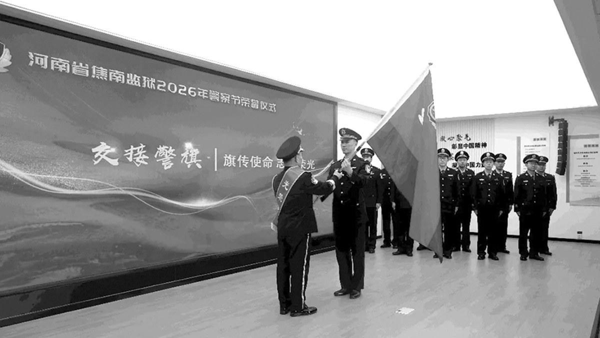 警旗交接仪式 警旗飘扬铸忠诚,誓言铿锵启新程。1月10日是第六个中国人民警察节,1月7日至10日,全省各监狱相继举办主题鲜明、形式多样的庆祝活动,连贯起老中青三代干警的使命接力,全方位展现了全省监狱人民警察队伍忠诚履职、敢于担当、甘于奉献的精神风貌,凝聚起新时代监狱工作高质量发展的磅礴力量。 致敬奉献·岁月映坚守 一句感谢、一枚奖章、一份惦念,汇聚全省监狱系统向荣退干警致敬的共同心声。各监狱通过温情仪式定格奋斗岁月,传递组织关怀。 1月7日,省女子监狱以一部精心制作的《那时他们正年轻》视频拉开系列活动序幕,泛黄的影像串联起荣退干警的从警生涯。监狱相关负责人为荣退干警及从警30年干警逐一颁发纪念杯与纪念章,在回望中彰显对老干警的尊重。 1月8日,省豫中监狱将荣退仪式与从警30年荣誉奖章颁授相结合,让每一枚承载着数十载忠诚坚守的纪念章,见证老同志们藏蓝生涯的无悔选择。 1月9日,省焦南监狱庆祝警察节活动的“致敬奉献”环节温情满溢,短片《荣光足迹 心语新程》流转着老同志们数十年坚守的身影,监狱相关负责人为他们颁发定制纪念奖杯,青年干警献上鲜花,将对前辈的崇敬与感恩娓娓道来。同日,省第二监狱在庆祝大会上为10名2025年退休的干警职工代表颁发光荣退休纪念章,青年干警代表献花致敬,用仪式感定格奉献荣光。省郑州监狱则以文艺表演传递深情,退休人员代表的柔美舞姿、歌曲《无名的人》的悠扬旋律、诗朗诵《情系郑狱永远有您》的真挚情感,让庄严的仪式多了份温情与厚重。 薪火相传·青春续荣光 警旗飘扬,使命相传。“薪火相传”是全省监狱警察节活动的核心篇章,各监狱通过警旗交接、重温誓词、师徒结对等形式,完成精神的延续与责任的交接。 1月8日,省豫东监狱200余名新老干警齐聚一堂,退休干警代表将象征忠诚与担当的警旗郑重交予新警代表,谆谆嘱托与坚定回应,奏响使命传承的乐章;同日,省第三监狱“藏蓝守初心薪火映征程”主题活动中,“青蓝共携手”师徒结对仪式温情上演,三组师徒代表相互敬礼,徒弟为师傅佩戴绶带、献上胸花,将“传帮带”优良传统转化为看得见的责任与承诺。 1月9日,省焦南监狱的警旗交接仪式庄重肃穆,退休干警代表将警旗交予新警代表,新警们挥舞警旗,三次振臂高呼“不辱使命、砥砺前行”,口号响彻全场。随后,全体干警重温入警誓词,铿锵誓言既是对初心的坚守,又是对未来的承诺。同日,许昌监狱的升旗仪式上,五星红旗与警旗先后升起,全体干警高举右拳重温入警誓词,字字千钧的誓言淬炼着忠诚警魂。 1月10日,省第一监狱的庆祝活动为系列活动画上圆满句号。朝阳下,6个整齐的方队庄严肃立,4名礼兵护卫警旗入场,升旗仪式与重温入警誓词环节庄重肃穆。仪式后,青年干警走进监狱历史展厅,在一幅幅照片、一面面锦旗中追寻前辈奉献的足迹,凝聚起奋进力量;各党支部还以主题党日形式开展座谈交流,为新一年度工作蓄力。 榜样引领·岗位淬硬功 以榜样为镜,向先进看齐。各监狱通过表彰先进、分享事迹等形式,激励全体干警在岗位上淬炼硬功、展现担当。 1月9日,省焦南监狱对48名“岗位能手”进行表彰。这批“岗位能手”是监狱党委自2025年4月起,围绕狱政管理、教育改造等8项核心业务进行“理论+技能”全员练兵与三级量化考评,从全体干警中严格评选产生的。该监狱劳动改造岗位能手代表胡少辉分享了日复一日钻研、关键时刻担当的故事,生动诠释了“干一行,爱一行;专一行,精一行”的工匠精神。 同日,省第二监狱组织干警在庆祝大会上集中观看2025年度先进典型事迹展播,为荣获2025年第三、四季度省直司法行政系统共产党员先锋岗称号的4名同志颁发奖牌和证书,旨在发挥典型引领作用,激发干警实干争先的活力。 |