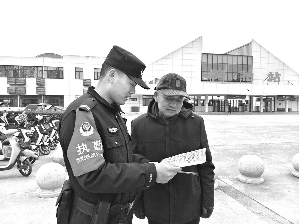为切实守护群众财产安全,增强群众的反诈意识,1月25日,洛阳铁路公安处桐柏站派出所民警深入站台广场开展反诈宣传,用心守护旅客的“钱袋子”。郭琨宋洁冰摄