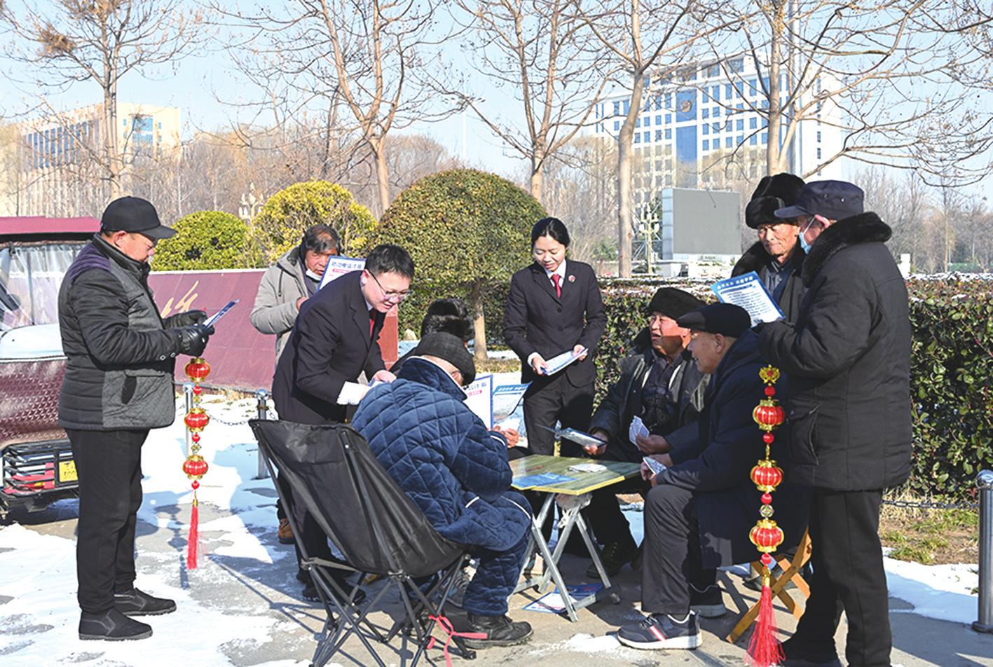 年关将至,针对老年群体的诈骗行为呈多发态势。1月22日,兰考县检察院干警走进社区、广场等处开展反诈宣传活动,帮助群众增强风险防范意识。本报全媒体记者张东实习生李梦华摄影报道