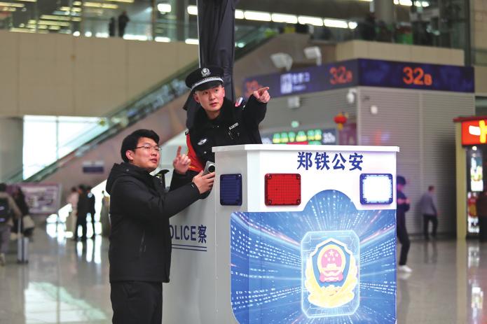 执勤台民警耐心为旅客指引路线