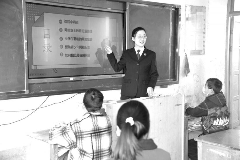1月30日,固始县检察院干警以法治副校长的身份走进该县黎集镇马塘小学,以“向‘网’美好生活,‘童’心一起守护”为题,为即将放寒假的该校学生系统讲解相关案例和法律法规,让学生直观感受到网络风险的隐蔽性,学会依法上网。