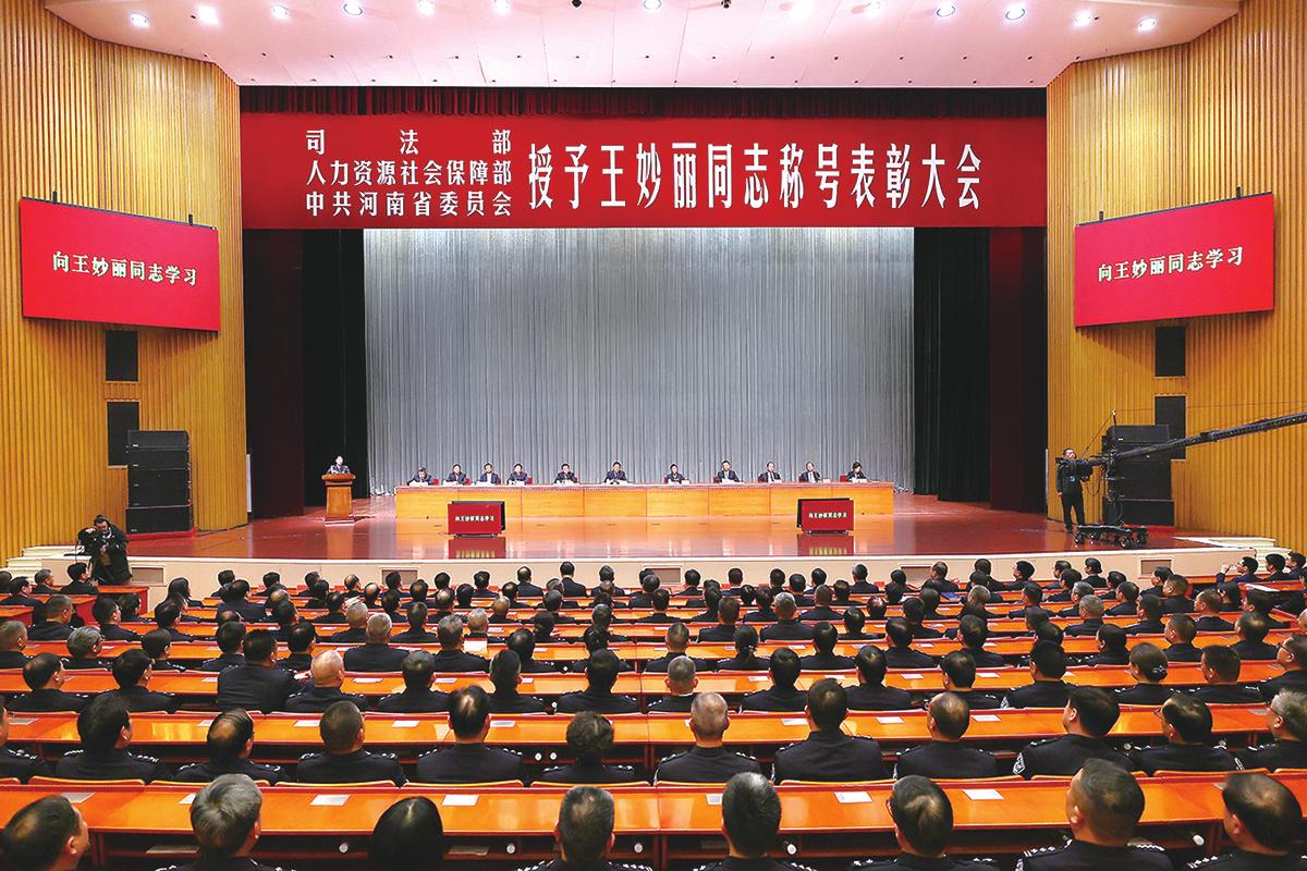 图为表彰大会现场 本报讯(全媒体记者刘婵张笑闻/文董亮蔡迅翔/图)2月4日,司法部、人力资源社会保障部、河南省委在郑州召开表彰大会,授予王妙丽同志“全国司法行政系统一级英雄模范”“河南省优秀共产党员”称号。司法部党组书记、部长贺荣,省委书记刘宁出席并讲话。省长王凯主持。 会上,贺荣、刘宁分别向王妙丽同志颁发“全国司法行政系统一级英雄模范”“河南省优秀共产党员”证书。司法部党组成员、政治部主任黄祎宣读《关于授予王妙丽同志“全国司法行政系统一级英雄模范”称号的决定》,省委常委、组织部长王刚宣读《关于授予王妙丽同志“河南省优秀共产党员”称号的决定》。王妙丽同志作了发言,表示将珍惜荣誉,不忘初心、牢记使命,忠诚履职,勇毅前行,永远做党和人民的忠诚卫士。 贺荣指出,王妙丽同志对党忠诚、英勇无畏、舍身为民,充分展现了司法行政干警的时代风采,是习近平法治思想和习近平总书记重要训词精神的忠实践行者,是当之无愧的忠诚卫士,是感人至深的英雄模范。全国司法行政系统要学习王妙丽同志对党忠诚、信念坚定的政治品格,忠诚履职,在强化政治建设、弘扬社会主义法治精神上久久为功,以实际工作成效坚定拥护“两个确立”、坚决做到“两个维护”。要厚植服务群众、甘于奉献的为民情怀,以过硬专业素养提升履职效能,树立和践行正确政绩观,着力提升政府立法、促进依法行政、法律服务和法治宣传等工作质效,让群众法治获得感更加可感可及。要弘扬临危不惧、敢于斗争的英雄气概,以高度的责任心,抓实刑罚执行、纠纷化解等工作,维护国家安全和社会稳定。 (下转02版) |