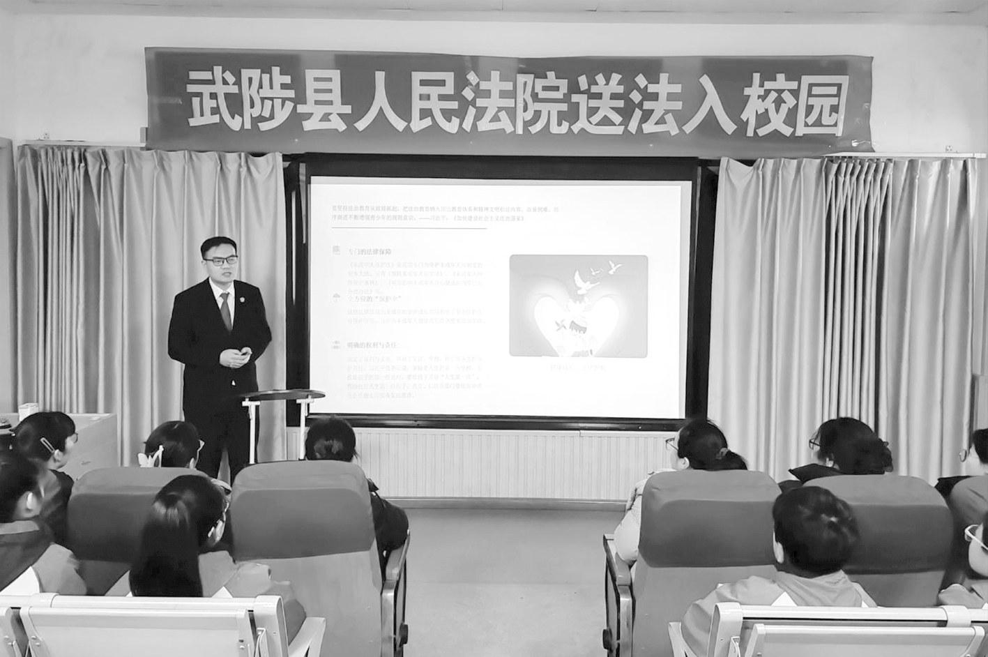 寒假前,武陟县法院沁南法庭庭长宋永盼走进辖区四叶草实验学校开展送法入校园活动,结合未成年人身心发展特点,围绕未成年人保护法、预防未成年人犯罪法等法律法规展开讲解,并向学生发放未成年人保护漫画宣传手册,引导学生增强法治意识,提高自我防范能力。