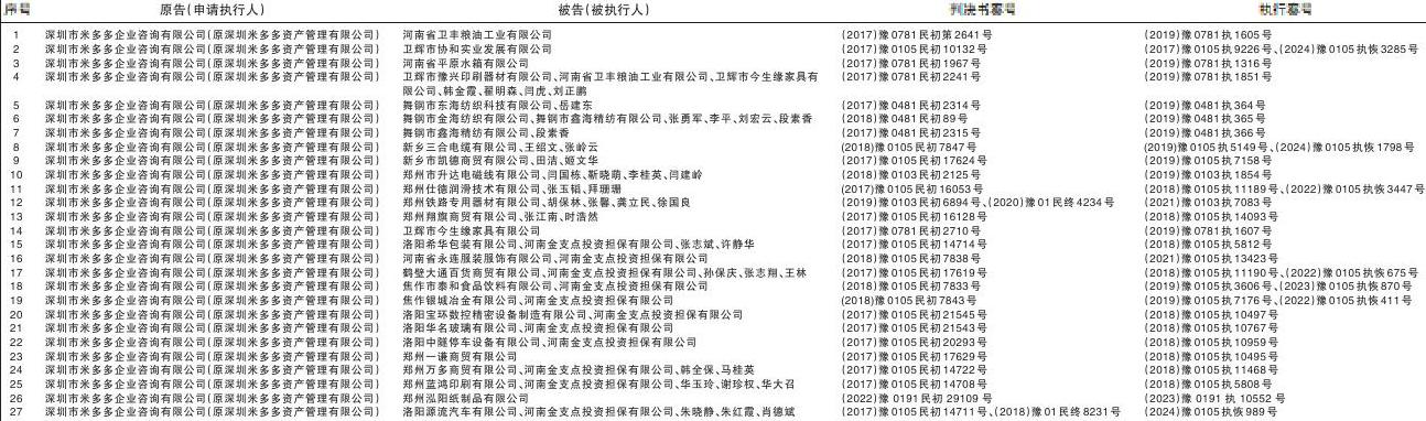 根据深圳市米多多企业咨询有限公司(原深圳米多多资产管理有限公司)与郑州赛玛企业营销策划有限公司签署的《债权转让协议》,深圳市米多多企业咨询有限公司已将其对下列债务人及其担保人享有的全部债权(包括但不限于主债权、担保债权、利息债权、迟延履行金及转让方已经缴纳的诉讼费、保全费等)依法转让给郑州赛玛企业营销策划有限公司。就上述主债权及其从权利转让事宜,深圳市米多多企业咨询有限公司与郑州赛玛企业营销策划有限公司联合公告通知各债务人及担保人以及其他相关各方。 郑州赛玛企业营销策划有限公司作为上述债权和担保权利的受让方,现公告要求下列债务人及担保人,从公告之日起立即向郑州赛玛企业营销策划有限公司履行生效法律文书确定的还本付息义务或相应的担保责任。 特此公告 深圳市米多多企业咨询有限公司 郑州赛玛企业营销策划有限公司 2026年2月5日 |