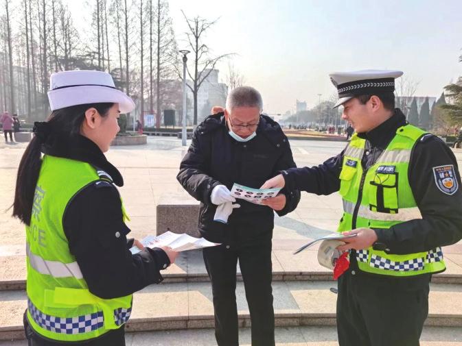 2月4日,濮阳市公安局交管支队交通勤务开发区大队民警辅警走进龙城广场,结合春节前后群众出行特点,向过往市民讲解安全步行、规范骑乘等知识,倡导大家在走亲访友、外出购物时优先选择低碳出行方式,共同守护家园环境与道路秩序。 荣铁军摄