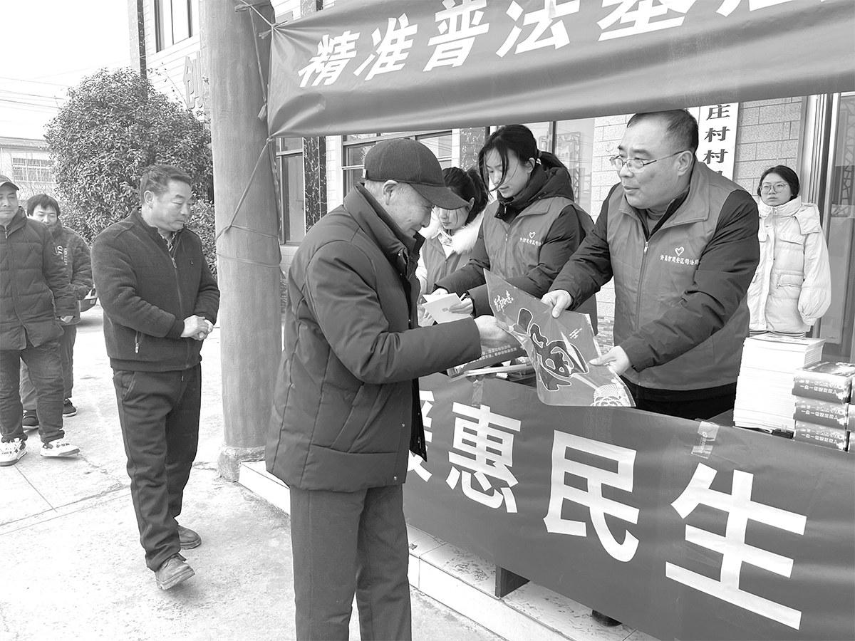 2月9日,许昌市建安区司法局灵井司法所工作人员走进社火戏剧地标地霍庄村,开展以“年末岁尾守法纪,平安祥和过大年”为主题的普法宣传活动。