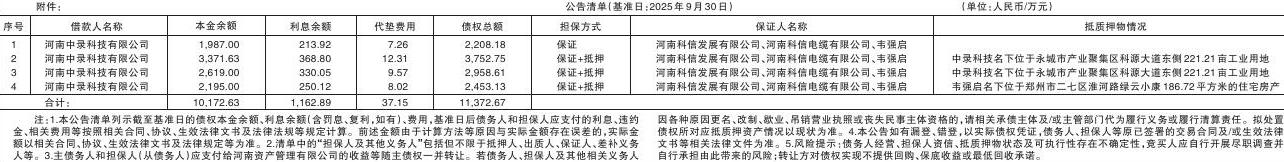 河南资产管理有限公司关于河南中录科技有限公司单户不良债权的处置竞价公告(编号:JJGG-202602000008) |