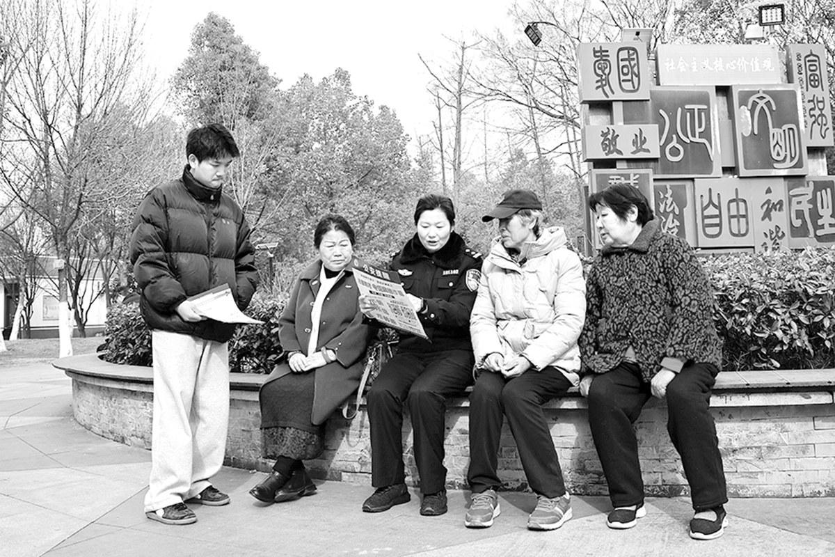 “群里发的拜年红包可不要随意乱点!”2月21日,农历正月初五,南阳市公安局卧龙区公安分局卧龙岗派出所社区民警在街心花园向市民普及反诈知识。