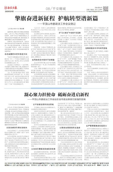 3月4日,平顶山市委政法工作会议召开。会议全面总结了过去一年的政法工作成绩,对2026年全市政法工作进行了系统部署。会后,全市政法系统迅速掀起学习贯彻热潮:从司法行政的法治护航,到法检两院的公正司法;从公安战线的平安守护,到队伍建设的铁军锻造……与会代表及广大政法干警纷纷表示,要将会议精神转化为实际行动,为平顶山高质量发展提供坚强政法保障。 以政治建设引领法治航向 在会议的指引下,全市政法系统将政治忠诚摆在首位,确保“刀把子”始终掌握在党和人民手中。 汝州市委常委、政法委书记陈海丰对“政治机关”的定位有着深刻理解。他表示,“政治机关”是党和人民手中的“刀把子”,必须把对党忠诚和党管政法融入血脉,狠抓政法队伍政治建设和政法干警党性修养理论武装。 舞钢市法院党组书记、代理院长王二朝表示:“通过深入学习会议精神,深感责任重大,我们将坚决筑牢政治忠诚,深耕审判执行主责主业,做深做实为大局服务、为人民司法,为服务保障经济社会高质量发展而不懈努力。” 以平安建设筑牢安全防线 平安建设,是此次会议部署的重点,也是维护社会稳定的基石。 在聆听会议讲话后,新华区检察院党组书记、检察长杨慧表示:“检察工作必须立足服务大局,紧扣省委和全市工作部署,结合新华区主城区定位,把检察履职融入平安建设、法治建设和生态保护、民生保障等重点工作,以检察担当服务发展大局。” 汝州市公安局特巡警大队负责人杨亚磊表示,公安民警作为维护社会治安、处置突发警情的一线力量,必须把会议精神转化为实干担当。他们将立足岗位,深化“警网融合”,依托“党建+网格+大数据”模式,提升快速反应和应急处突能力。 郏县法院党组书记、院长朱少峰表示,该院将加强各部门协作配合,形成高效联动工作合力;抓实执法办案,全面准确贯彻宽严相济刑事政策,确保执法办案政治效果、法律效果与社会效果相统一。 以法治引擎驱动县域经济发展 法治是最好的营商环境。如何发挥法治固根本、稳预期、利长远的作用,成为与会代表热议的焦点。 叶县司法局局长张建召表示,叶县司法局将深耕法治政府建设,持续发挥合法性审查“守门员”作用,严把重大决策法治关;同时,做优矛盾纠纷调解工作,擦亮“红石榴明理堂”“小辣椒调解室”等特色品牌,深化“党建+调解”模式,筑牢基层和谐“第一道防线”。 鲁山县司法局局长高长见表示,会议为基层司法行政工作指明了方向、明确了路径。该局将聚焦法治建设,打造护航发展品牌,充分发挥依法治县办职能作用,纵深推进法治政府建设,持续优化法治化营商环境,以高质量法治服务保障县域经济社会高质量发展。 以服务治理浸润民生温度 湛河区检察院党组书记、检察长郑涵表示,此次会议部署明确、要求具体,深感责任重大。该院将牢牢把握“固根本、稳预期、利长远”的法治定位,常态化开展案件质量评查,落实认罪认罚从宽制度,加大民生领域检察监督力度。 卫东区法院党组书记、院长李明表示,将主动融入基层社会治理大局,深度对接社会治理体系,落实“夯基铸魂、夯基提质、夯基赋能、夯基进阶”工作安排,积极参与基层矛盾纠纷源头预防、前端化解,推动司法服务与基层综治工作高效衔接。 石龙区委政法委副书记冯英帅表示,将深入学习贯彻会议精神,以实际行动践行新时代“枫桥经验”,更加主动地融入综治中心规范化建设,公正高效办案,倾心倾力解纷,扛牢基层治理责任,全心全意守护万家灯火。 平顶山市公安局卫东分局建设路派出所民警李红卫深感责任重大。他表示,作为一名社区民警,将以会议精神为引领,坚持用“真心为民、耐心待民、贴心对民、细心工作、用心干事”的“五心工作法”扎实开展工作,深化“1456”警网融合,联动网格员、群防群治力量形成共治合力,努力把矛盾化解在基层。 以严管厚爱激发队伍活力 汝州市检察院党组书记、检察长王晓民表示,政法队伍必须是一支信念坚定、执法为民、敢于担当、清正廉洁的过硬铁军。该院将深化“青蓝计划”,加强“砺汝工坊”人才队伍建设,一体推进导师制、岗位练兵、实战练兵,着力提升检察人员核心履职能力。 鲁山县法院党组书记、院长谢磊表示,该院将严守“三个规定”,持之以恒正风肃纪,净化司法生态;压实管理责任、完善监督体系,加强政治轮训与业务培训,锻造忠诚干净担当的法院铁军,助力优化营商环境,服务新质生产力;深化“一庭一策”,打造特色亮点;推动诉讼服务中心与综治中心有机衔接,主动融入基层社会治理,以实干实绩诠释担当。 |