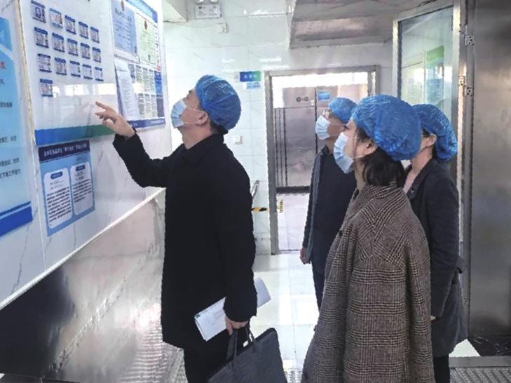 3月18日,郑州市教育局第八检查组人员来到郑州师范学院附属小学,开展春季校园安全大检查工作。图为检查组人员查看学校食堂工作人员健康证。 郑小摄
