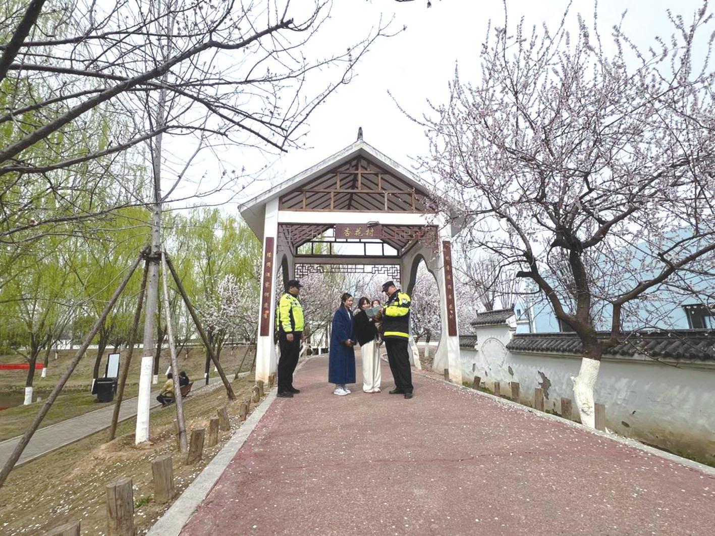 为增强辖区游客的交通安全意识,3月19日,夏邑县公安局交通管理大队民警深入辖区杏花村、桃花岛景区,对赏花游客进行交通安全宣讲。 周学峰摄