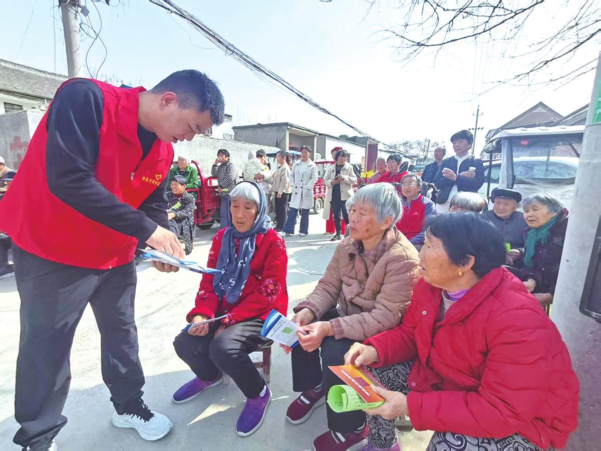 3月25日,许昌市建安区司法局陈曹司法所联合河南本润律师事务所,在建安区陈曹乡前孙汪村开展“情暖幸福院法护夕阳红”普法宣传活动,让法治阳光照亮幸福晚年。图为工作人员向老人发放宣传页。