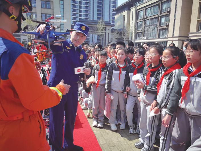 展示消防装备 3月30日是第31个全国中小学生安全教育日。3月27日,2026年中小学生安全教育日消防宣传活动,在郑州市金水区农科路小学国基校区举行。 此次活动由省消防救援总队、省教育厅联合主办,郑州市消防救援支队、市教育局承办,以“理论讲解+实景实验+互动体验+专业赋能”多元形式,把枯燥的消防安全知识转化为生动易懂的实操内容,真正让消防安全常识入脑入心。 沉浸式班会直观了解“烟囱效应” “火灾现场最致命的威胁是什么?”“火焰和浓烟,究竟哪个蔓延速度更快?”活动伊始,一场以互动提问引发学生思考的主题班会开讲,一连串贴近生活的问题,瞬间勾起了在场学生的好奇心与探索欲。 当同学们给出“浓烟是火场第一杀手”“浓烟蔓延速度远超火焰”的答案后,消防副校长现场开展模拟实验,用直观易懂的方式为大家讲解火场“烟囱效应”的核心原理。班会尾声,全体师生共同梳理所学消防知识,齐声诵读“三清三关”安全口诀。 “小学阶段是学生行为习惯养成与安全意识建立的关键时期。学校始终将安全教育摆在办学首位。”农科路小学教育集团党委书记、校长孙永亮表示。 聘任消防副校长注入安全管理专业力量 活动现场,消防副校长聘任仪式同步举行,6人受聘成为校园消防副校长,为校园安全管理注入专业力量。 “受聘担任消防副校长,既是一份信任,又是一份沉甸甸的责任。”作为消防副校长代表,郑州市金水区消防救援大队的程远承诺,将全力当好校园消防工作的“参谋”“安全指导员”“知识宣传员”,让“关注消防、学习消防、参与消防”成为全校师生的自觉行动。 省教育厅副厅长陈凯在讲话中指出,安全工作没有终点,永远在路上,此次活动聚焦消防安全主题,就是要让安全警钟时刻长鸣、让消防常识内化于心、让避险能力外化于行。希望全省各中小学以此次活动为契机,进一步压实校园安全主体责任,全力提升消防安全“四个能力”,把安全种子深深根植师生心中。 零距离感受消防力量构建全员参与的宣传格局 疏散逃生演练结束后,同学们最期待的消防装备器材展示区正式开放,各类高精尖消防装备整齐排布,消防救援人员详细讲解它们的功能用途、操作要点与实战场景。 技能展示台上,铁丝紧紧贴合在脆弱的灯泡表面,消防员手持无齿锯沉稳操作,精准发力,快速切割,铁丝瞬间断开,灯泡完好无损。“哇!太厉害了!”“太牛了!”……在场学生发出阵阵惊呼,掌声不断。 现场多款科技感拉满的消防“利器”,更是让师生们大开眼界:每小时排烟量高达10万立方米的消防排烟机器人,高效破解浓烟密闭空间救援难题;每秒流量80升、一分钟可喷水5吨的消防遥控水炮,尽显超强灭火战力;能够轻松翻越18厘米台阶的消防机器狗,灵活穿梭完成各类复杂救援任务。 省消防救援总队副总队长赵伟刚结合翔实数据,深刻阐释校园消防安全的重要性。他表示,各校要严格落实《中小学校、幼儿园消防安全十项规定》,创新教育形式,充分发挥消防副校长专业优势,构建全域覆盖、全员参与的校园消防宣传格局。 |
