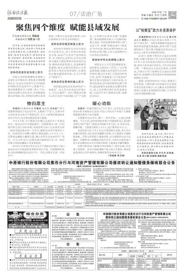 中原银行股份有限公司焦作分行与河南资产管理有限公司债权转让通知暨债务催收联合公告(编号:ZQZRGG-202603000018)