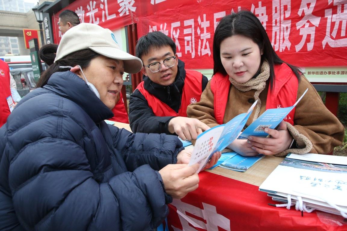 连日来,焦作市解放区司法局组织普法志愿者启动“法律宣传进万家”志愿者宣传活动,有效提升了社区居民法治观念和依法办事的自觉性。 李亮贵摄