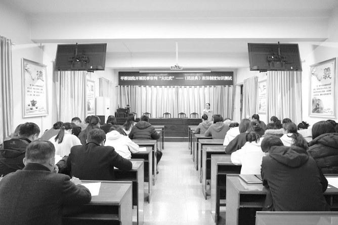 3月26日,信阳市平桥区法院组织开展民事审判“大比武”——《中华人民共和国民法典》担保制度专题知识测试,全体民事员额法官及法官助理参加测试。本报全媒体记者杨占伟本报通讯员余旻昱摄影报道