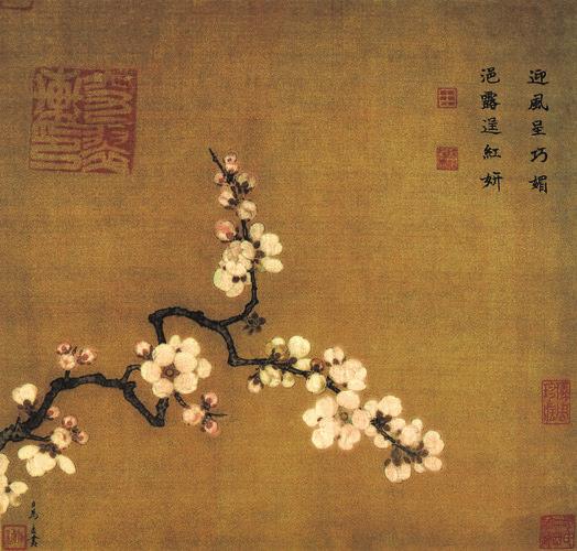 作者:马远时期:南宋材料:册页绢本设色规格:25.8×27.3cm现状:藏于中国台北故宫博物院 马远(1140年前后-1225年之后),南宋画家。字遥父,号钦山,祖籍河中(今山西永济),出生钱塘(今浙江杭州),曾祖贲、祖兴祖、父世荣、伯公显、兄逵,均为画院待诏。远擅画山水,兼精人物、花鸟,工于画水。后人把他与夏圭并称“马夏”,合李唐、刘松年,称“南宋四家”。传世作品有《踏歌图》、《雪屐探梅图》、《水图》、《白蔷薇图》等。 此图绘一枝杏花轻灵润秀、堆粉砌霜之姿。用笔精细工整,设色淡雅,气韵生动。 |
