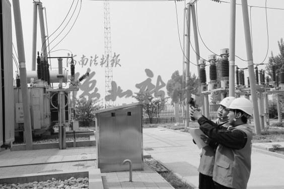 入夏以来,用电负荷快速增长。安阳县电业管理公司调度中心的12名党员志愿者放弃休息时间,组成4个临时特巡队,深入到供电辖区内20个变电站义务对供电设备的安全运行等情况进行巡视,及时消除安全隐患,确保辖区内群众清凉度夏。图为昨日,党员志愿者在对永和110千伏变电站1号变压器进行红外线测温。